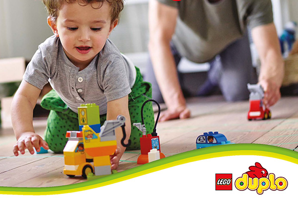 Při hře mohou rodiče dětem názorně vysvětlit, jak to vlastně ve světě chodí. Společně tak zvládnete první chůzi po schodech nebo zaplatíte první nákup v obchodě. Se zcela novou stavebnicí LEGO® DUPLO® Můj první náklaďák se mohou děti naučit hledat stejné dvojice obrázků a díky nové stavebnici LEGO DUPLO Moje první zahrádka dětem snadno vysvětlíte, jak pěstovat květiny a sklízet rajčata.